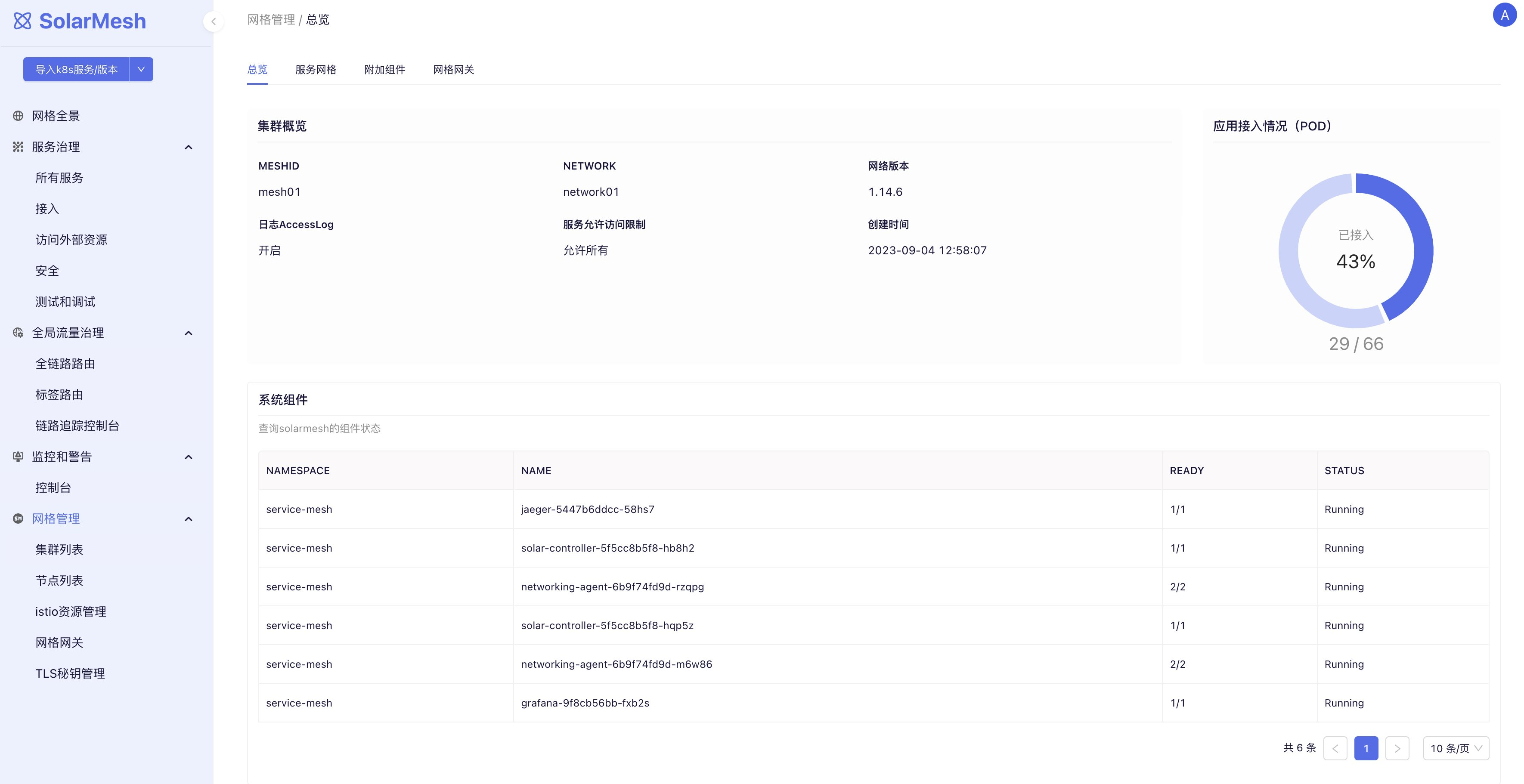 2、网格全景展示了网格中所有服务的运行状况。